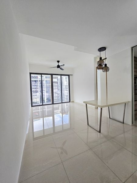 Step into this beautifully renovated 3-bedroom unit at Coco Palms, where abundant natural light floods the bright and airy living and dining area. The large format floor tiles and elegant pendant lighting create a welcoming ambiance, while the balcony offers a refreshing outdoor space with views of the neighboring urban landscape.