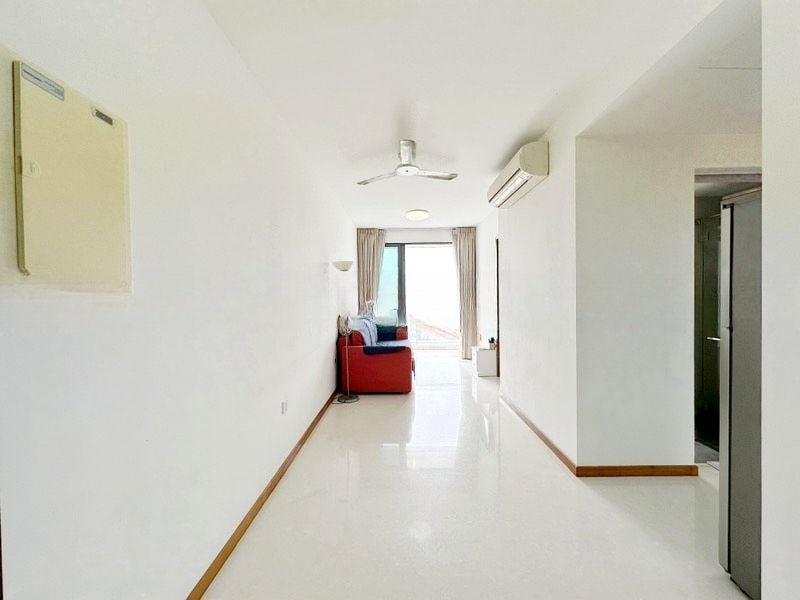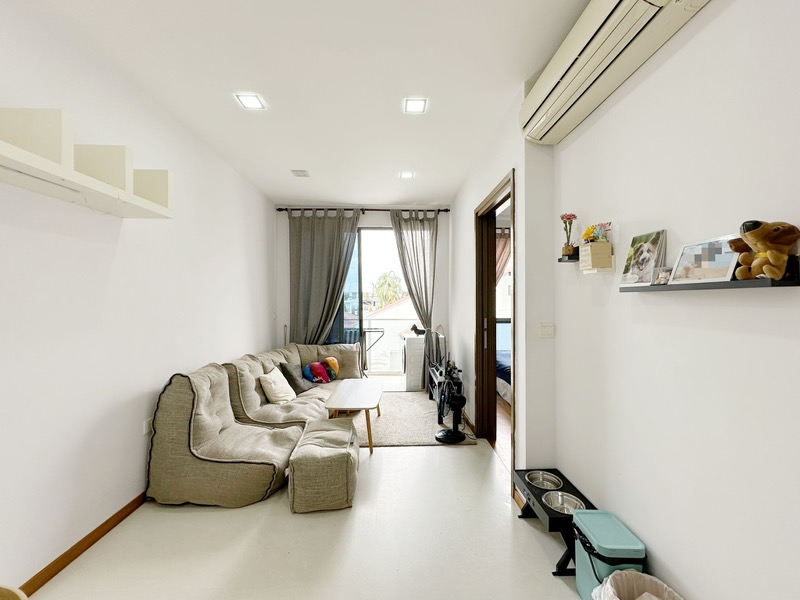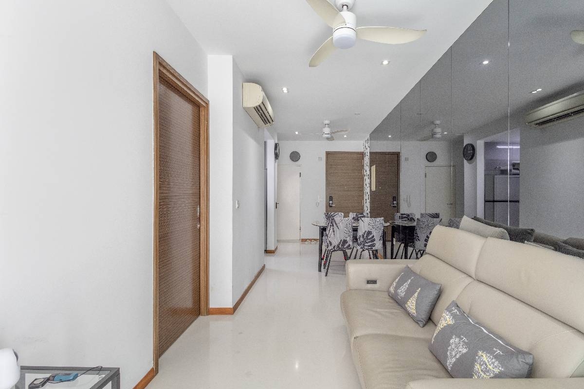 Step into a bright and airy sanctuary at ISUITES @ PALM, where abundant natural light floods through floor-to-ceiling windows, offering captivating views of the urban skyline. The inviting ambiance is enhanced by the well-maintained interiors, featuring elegant wood flooring in the bedrooms and a spacious living area that beckons relaxation.