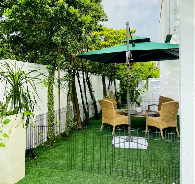 Step into a world of elegance and tranquility in this beautifully designed landed home. The moment you enter, you are greeted by an airy ambiance, accentuated by abundant natural light streaming through skylights and floor-to-ceiling glass sliding doors. The backlit carved stone feature wall adds a touch of sophistication, while the views of lush greenery and neighboring houses create a serene backdrop.