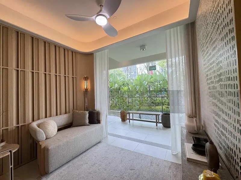 Step into a world of modern luxury as you enter this brand-new designer unit at Hillhaven. The abundant natural light floods through the floor-to-ceiling windows, illuminating the double-volume living space that seamlessly integrates with the dining area. With breathtaking views of the city skyline, pool, and lush greenery, this home offers an ambiance that is both inviting and sophisticated.