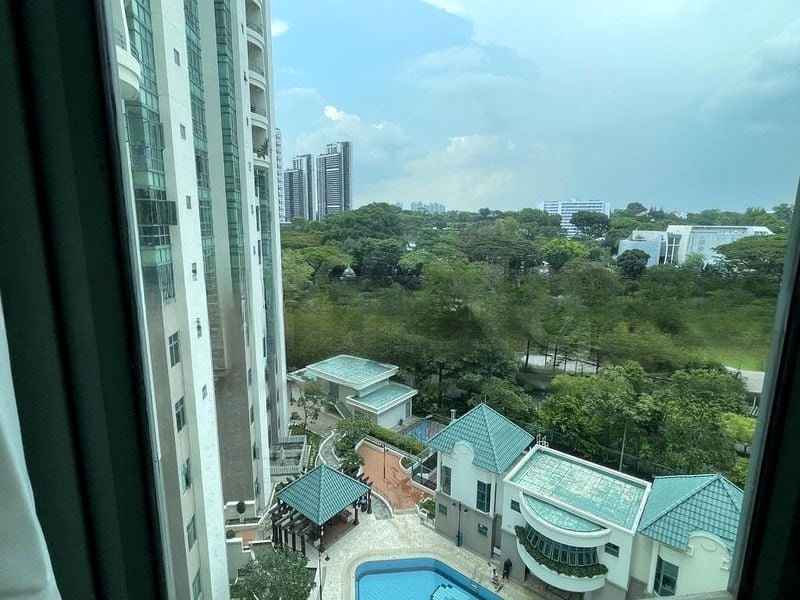 Step into a warm and inviting ambiance as you enter this well-maintained 2-bedroom unit at Tanglin Regency. The moderate natural light filters through large windows, illuminating the cozy living spaces adorned with parquet wooden flooring and built-in floor-to-ceiling wardrobes. Enjoy the serene views of lush greenery and the city skyline, creating a perfect backdrop for relaxation.