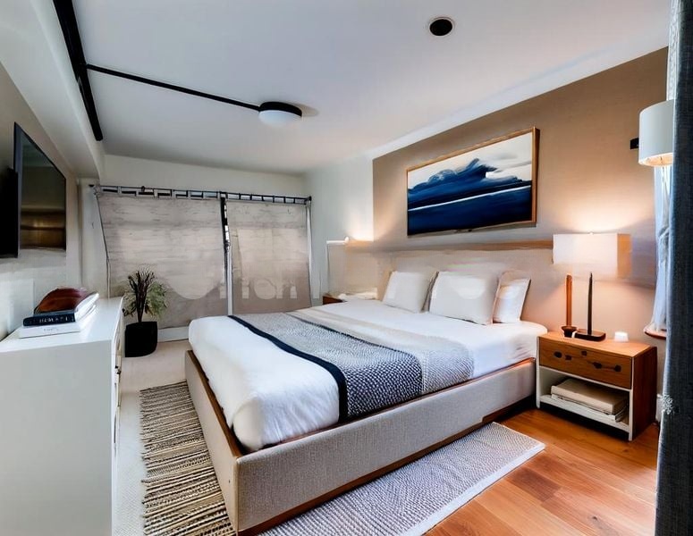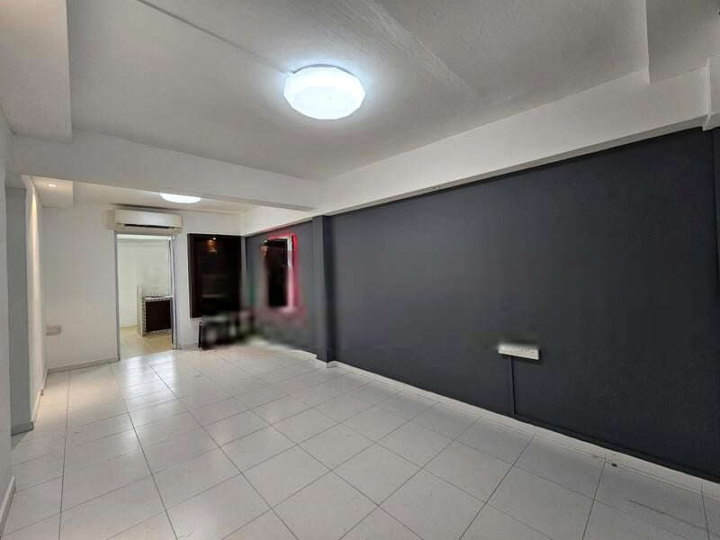 Step into a world of character and warmth as you enter this charming 2-bedroom HDB flat. The moderate natural light filters through the living room, highlighting the unique terrazzo flooring and the inviting orange accent wall. The arched doorway leads you seamlessly to the kitchen, where patterned floor tiles and wood-look cabinetry create a functional yet stylish cooking space, perfect for culinary adventures.