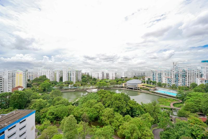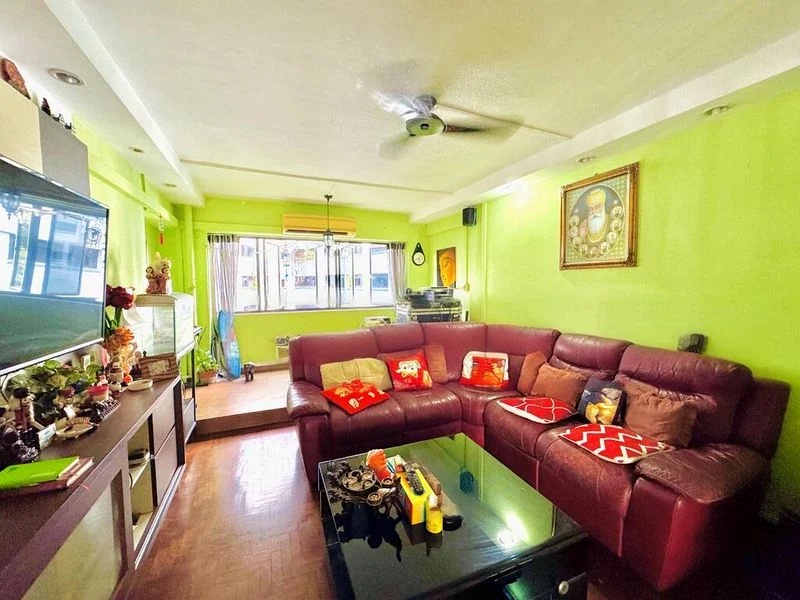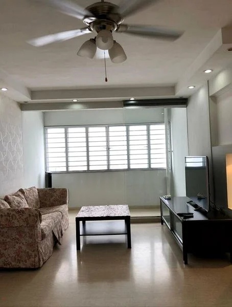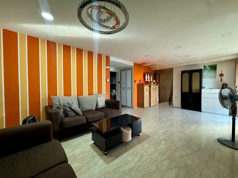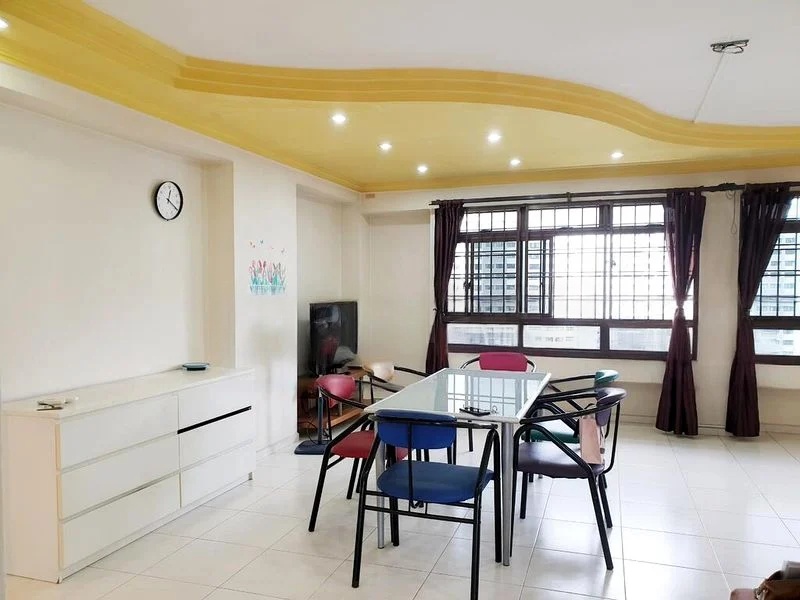 Step into a cozy and warm ambiance as you enter this well-maintained HDB flat, where marble-look tiled flooring and decorative ceiling cornices create an inviting atmosphere. The spacious living room, bathed in natural light, opens up to a balcony with sliding glass doors that offer unblocked views of the city skyline, making it a perfect spot for relaxation.