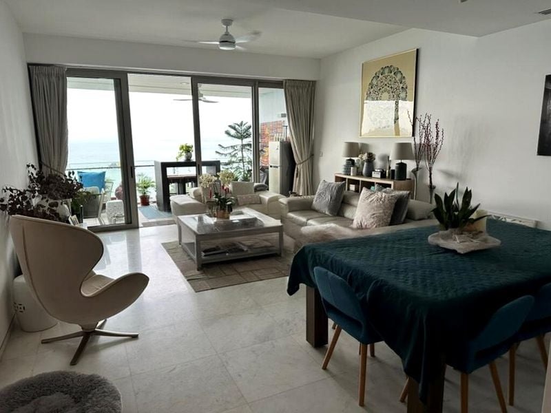 Step into a world of elegance and tranquility as you enter this designer unit at The Coast at Sentosa Cove. Bathed in abundant natural light, the open-concept living area features exquisite marble flooring and floor-to-ceiling glass doors that seamlessly connect indoor and outdoor spaces, offering breathtaking views of the sea and lush greenery. The bright and airy ambiance invites you to relax and unwind in style.