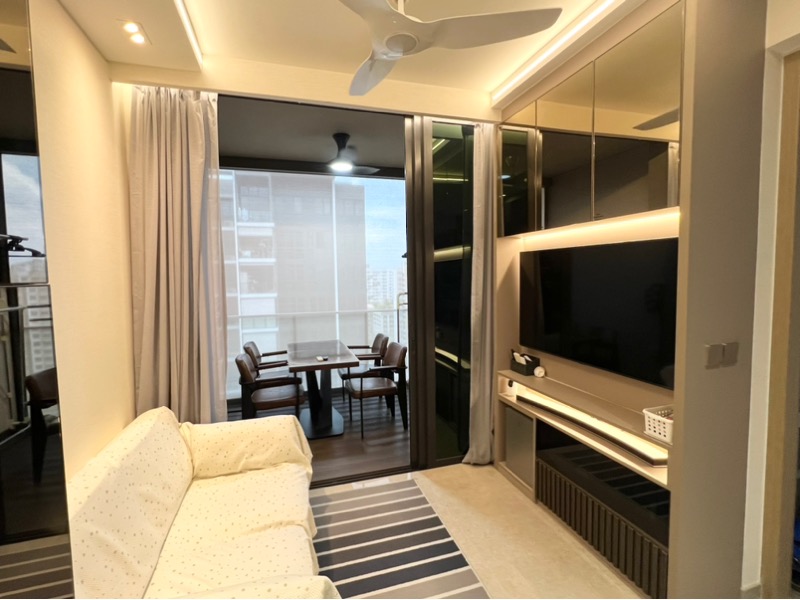 Step into this beautifully renovated 2-bedroom unit at The Tapestry, where modern minimalist design meets urban charm. The moment you enter, you are greeted by a striking mirrored feature wall that enhances the sense of space, complemented by cove lighting that creates a warm ambiance. Enjoy the gentle flow of natural light filtering through the living room, where a built-in TV console with LED lighting sets the perfect backdrop for relaxation.