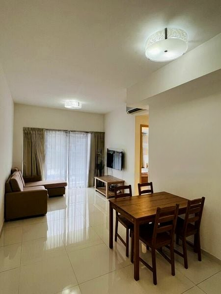 Step into a world of light and space in this beautifully maintained 2-bedroom unit at NV Residences. The open layout of the living and dining area welcomes you with abundant natural light, highlighting the elegant tiled flooring and seamless access to the balcony. Enjoy serene views of lush greenery and urban landscapes, creating a tranquil ambiance that feels both refreshing and inviting.