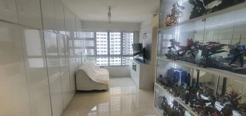 Step into this beautifully renovated 2-bedroom flat and be greeted by an abundance of natural light that dances across the minimalist white finishes. The open layout offers a seamless flow from the living room, where large glass display cabinets showcase your collectibles, to the stunning views of greenery and the city skyline beyond.