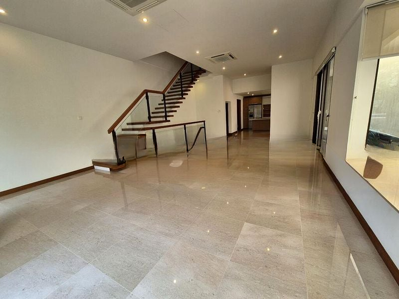 Step into a world of elegance as you enter this stunning landed home, where abundant natural light floods the open-concept living and dining area, accentuated by exquisite marble flooring and large windows draped with sheer curtains. The bright and airy ambiance invites you to unwind while enjoying views of lush greenery from the comfort of your home.