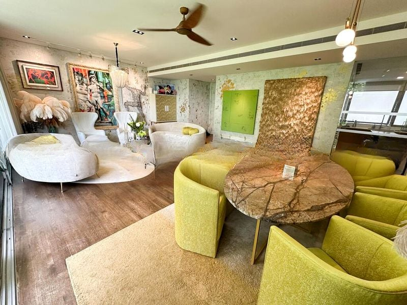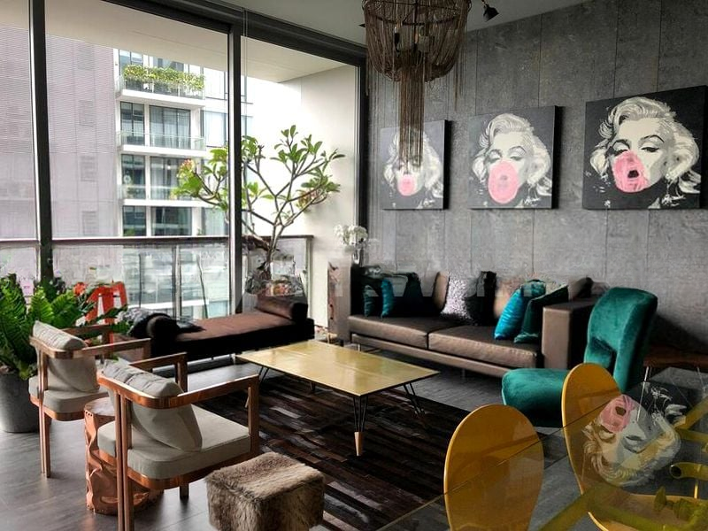 Step into a world of modern elegance at Hilltops, where abundant natural light floods the space through floor-to-ceiling windows, illuminating the designer finishes and creating a warm, inviting ambiance. The lush greenery outside provides a serene backdrop, enhancing the tranquil atmosphere of this well-maintained unit.
