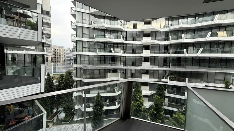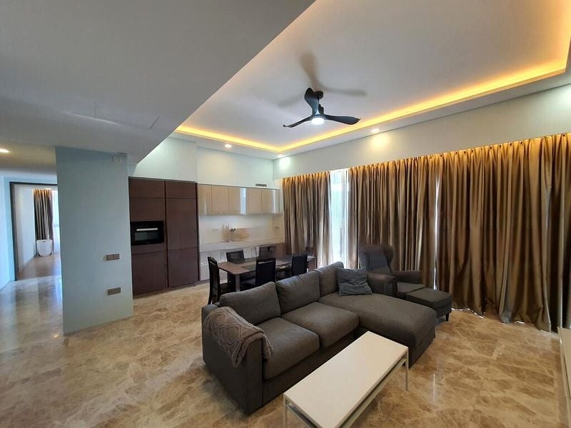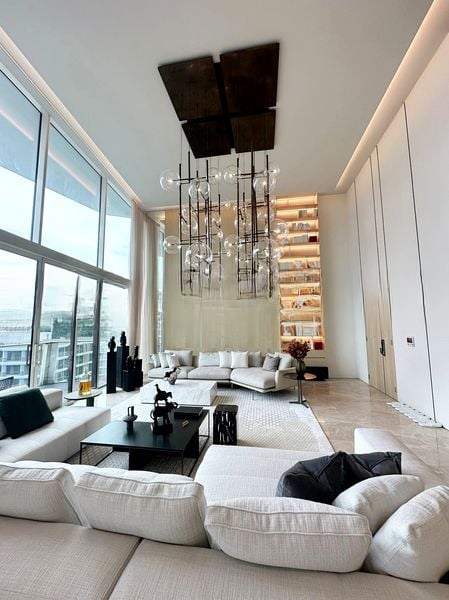 Step into a world of luxury as you enter this brand-new designer unit at Corals at Keppel Bay. The double-volume high ceiling and floor-to-ceiling windows flood the living space with abundant natural light, creating an inviting ambiance. Marvel at the exquisite marble flooring and the elegant designer glass globe chandeliers that enhance the modern aesthetic, while the breathtaking views of the waterfront, pool, and lush greenery provide a serene backdrop.