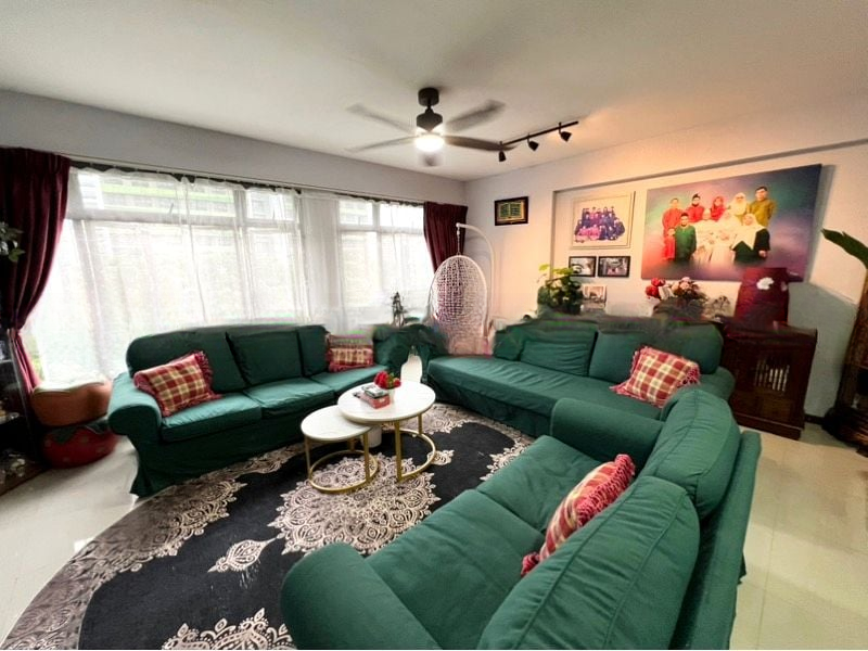 Step into a beautifully maintained HDB flat where abundant natural light floods the spacious living area, creating a warm and inviting ambiance. Large windows adorned with sheer curtains frame stunning unblocked views of lush greenery and the surrounding neighborhood, while the cozy seating area invites you to relax and unwind. The thoughtful touches, including a hanging swing chair, enhance the charm of this home.