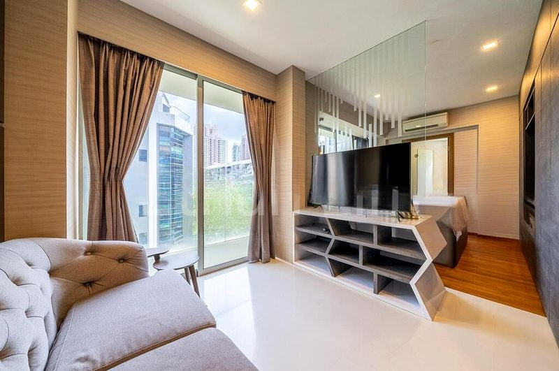 Step into a bright and airy sanctuary at LOFT @ NATHAN, where abundant natural light floods the space, accentuating the high ceilings and elegant finishes. The large windows frame stunning views of the city skyline, creating an inviting atmosphere that feels both spacious and intimate.