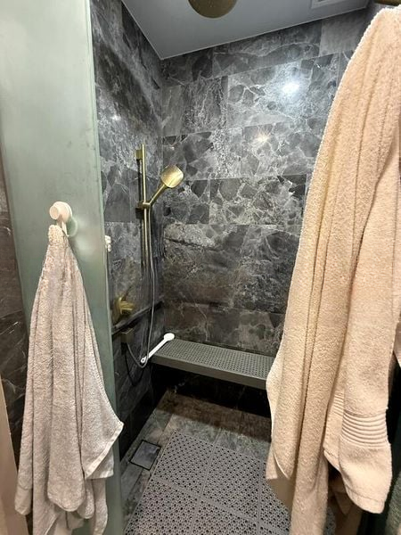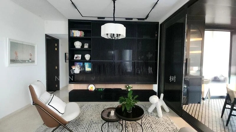 Step into a world of modern elegance as you enter this beautifully renovated unit at Meyer Mansion. The abundant natural light floods the open-concept living space, highlighting the striking designer black slatted feature wall with integrated LED lighting. Floor-to-ceiling glass sliding doors lead you to a balcony that invites you to unwind amidst unobstructed views of lush greenery, creating a serene ambiance that feels like a private retreat.