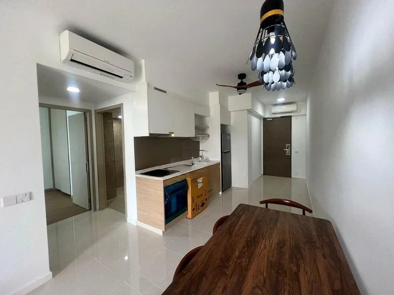 Step into this beautifully designed 4-bedroom unit at Treasure at Tampines, where a warm ambiance greets you with its cozy, well-maintained interiors. The inviting living space is accentuated by polished flooring, a curved designer sofa, and ample natural light filtering through large windows, creating a serene urban retreat. The wooden slat feature walls and custom rattan pendant lighting add a touch of elegance, while mirrored accents enhance the sense of space throughout.