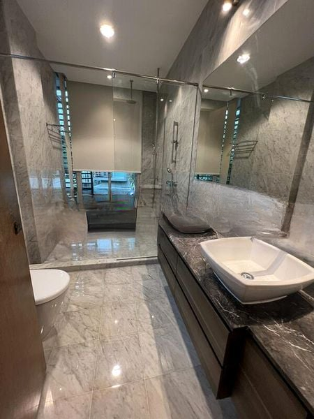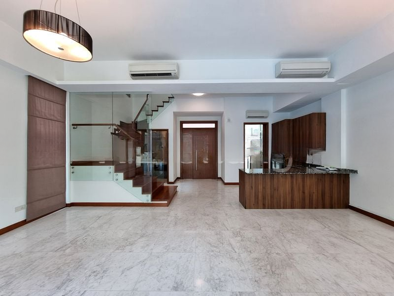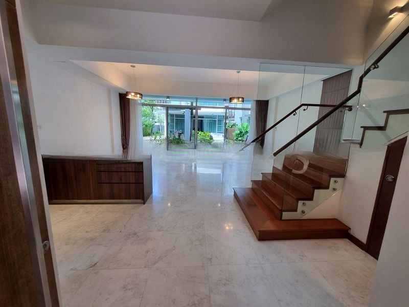 Step into a world of elegance as you enter this beautifully renovated home, where abundant natural light streams through floor-to-ceiling windows, illuminating the modern minimalist design. The high slanted ceilings create an airy ambiance, while views of lush greenery and neighboring buildings enhance the serene atmosphere.