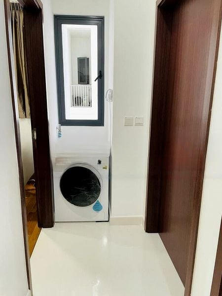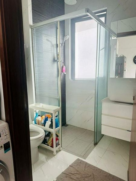 Step into a world of modern minimalism where light wood flooring and frosted glass accents create a serene ambiance. The open layout invites natural light, enhancing the spacious feel of this well-maintained unit. Enjoy urban views from the balcony, where sliding glass doors seamlessly connect indoor and outdoor spaces.