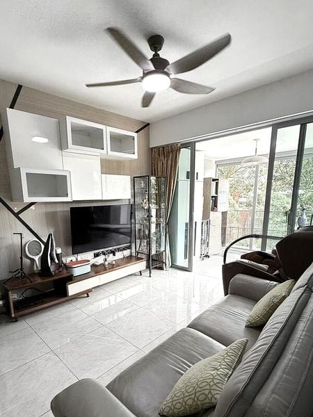 Step into this beautifully maintained unit at The Minton, where abundant natural light floods the bright and airy living space. The high floor offers unblocked views of the cityscape, HDB blocks, and lush greenery, creating a serene ambiance. The large balcony, adorned with artificial turf and a hanging egg chair, invites you to relax and enjoy the outdoors right at home.