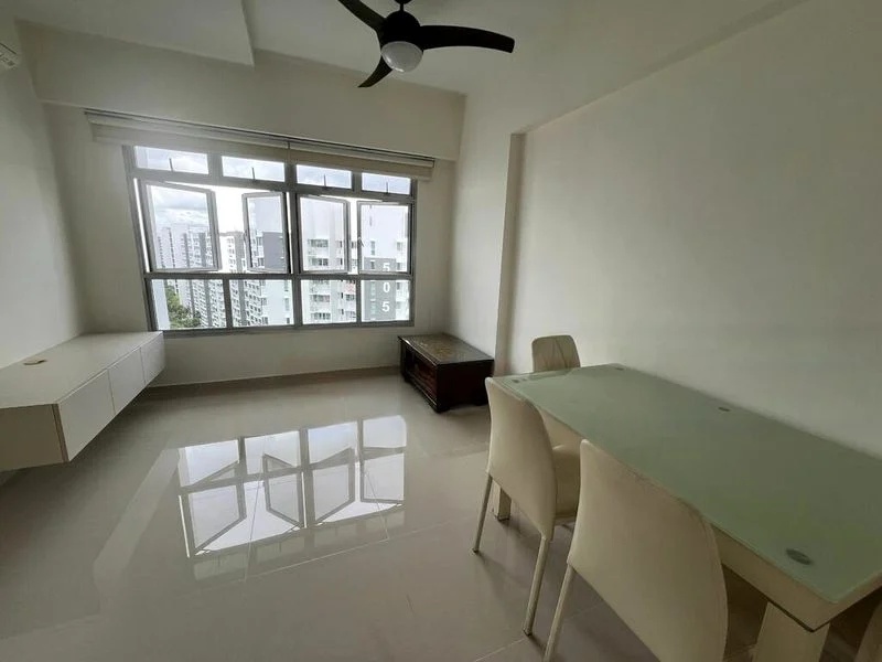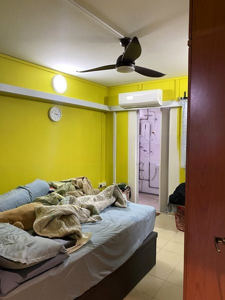 This well-maintained unit boasts a functional layout with standout features including built-in sliding door wardrobes in the bedrooms, a fully tiled bathroom, and a comfortable dining area with a ceiling fan. The light blue accent wall in the bedroom adds a touch of tranquility, making it an ideal retreat after a long day.