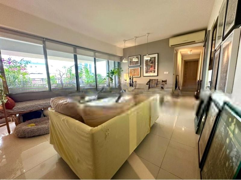 Step into a bright and airy haven at 22 Boon Keng Rd, where abundant natural light floods the living space, accentuating the well-maintained finishes and inviting ambiance. The urban landscape view from large windows creates a vibrant backdrop, while the L-shaped leather sofa and ceiling fans in multiple rooms enhance comfort and style.