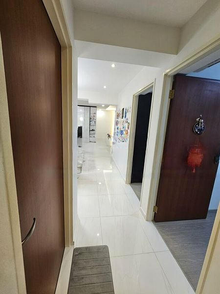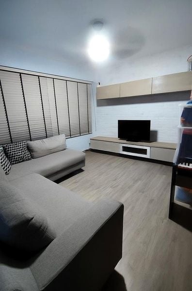 Step into this beautifully maintained HDB flat and be greeted by an abundance of natural light that fills the open concept living area. The modern minimalist design is accentuated by a striking vertical slat feature wall and elegant black designer ceiling fans, creating a sophisticated ambiance that invites relaxation. Enjoy stunning views of the city skyline from the comfort of your home, making every moment a visual delight.