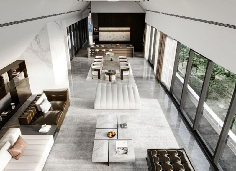 Step into a world of modern elegance as you enter this brand-new designer home, where abundant natural light floods through floor-to-ceiling windows, illuminating the exquisite marble flooring and accent walls. The open concept living area invites you to relax, while the stunning views of lush greenery and nearby residential buildings create a serene ambiance that feels both luxurious and welcoming.