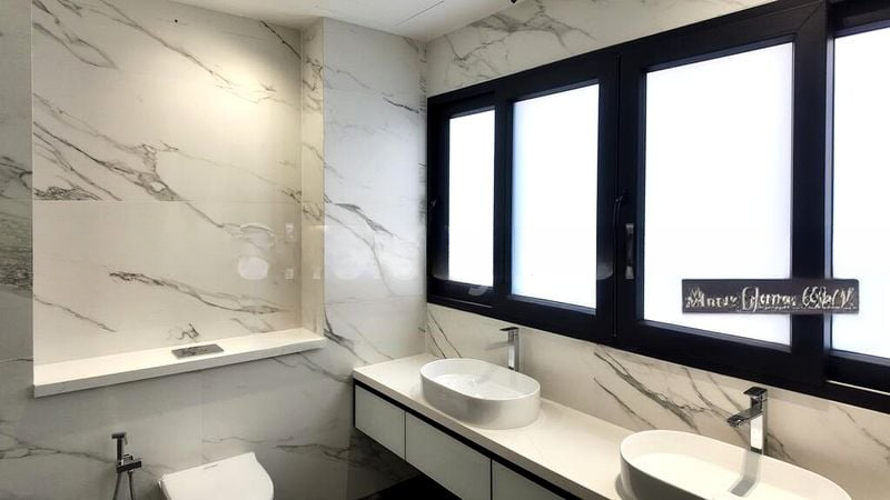 This exquisite residence boasts six spacious bedrooms, each adorned with wooden flooring and large windows, ensuring comfort and tranquility. The modern L-shaped kitchen is a chef's dream, featuring a marble-look backsplash, sleek white cabinetry with black trim, and ample natural light. The elegant staircase, with its wooden treads and glass railing, adds a touch of modernity to the home. With nine bathrooms, convenience is paramount in this thoughtfully designed layout.