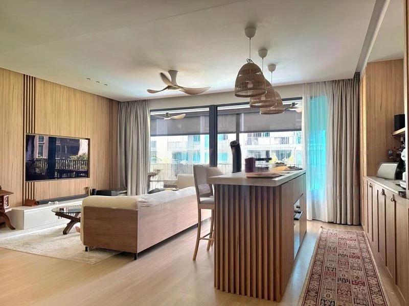 Step into a world of modern elegance as abundant natural light floods this meticulously maintained unit at Treasure at Tampines. The open layout invites you to experience a seamless blend of indoor and outdoor living, with stunning views of the large swimming pool and lush greenery. The neutral colour palette and minimalist finishes create a serene ambiance, perfect for relaxation.