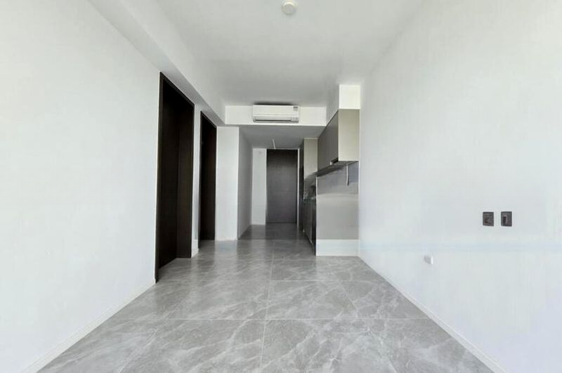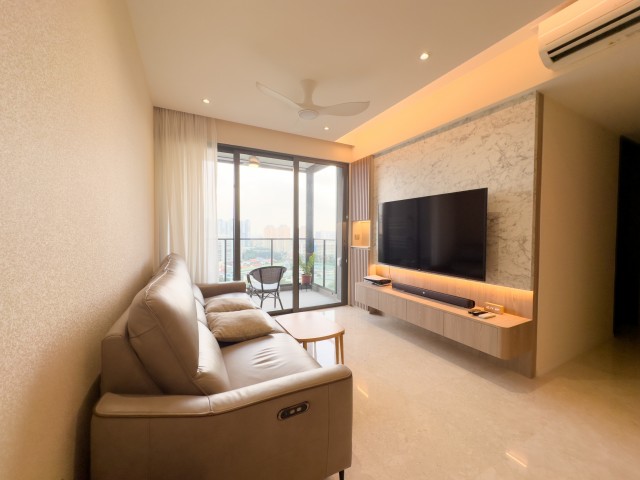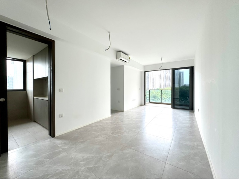 Step into this beautifully renovated 2-bedroom unit at CLAVON, where modern minimalist design meets comfort. The moment you enter, you are greeted by a bright and airy ambiance, enhanced by natural light filtering through the glass balcony that offers unobstructed views of the pool and lush greenery. The sleek finishes, including light wood-look flooring and designer ceiling lights, create an inviting atmosphere that feels both contemporary and warm.