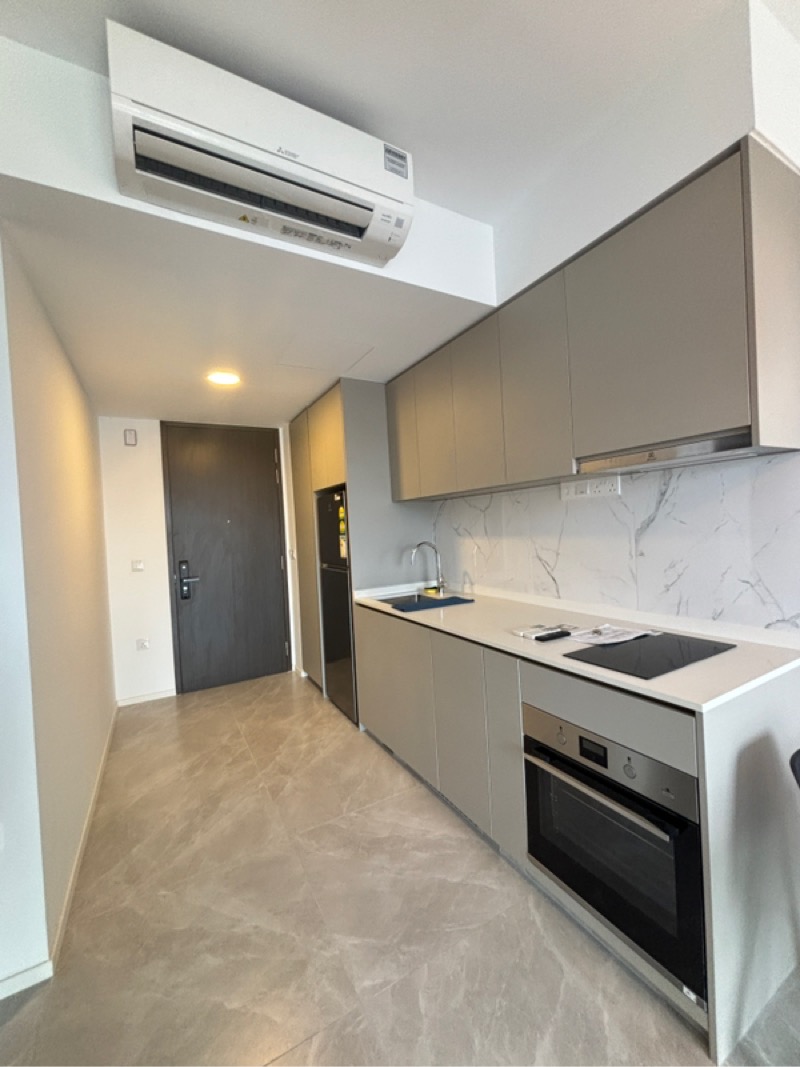 This well-maintained unit features a functional galley kitchen equipped with grey handleless cabinetry, white countertops, and a built-in oven, perfect for culinary enthusiasts. The spacious bedrooms come with ceiling fans and study desks, making them ideal for relaxation and productivity. The open layout seamlessly connects the living space to the balcony, where you can unwind while enjoying the picturesque views of the city skyline.