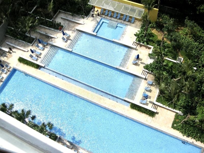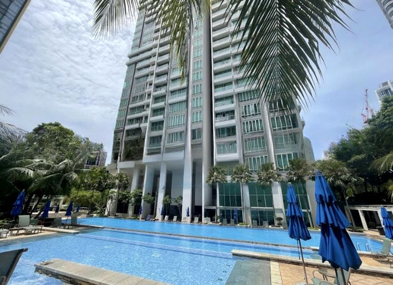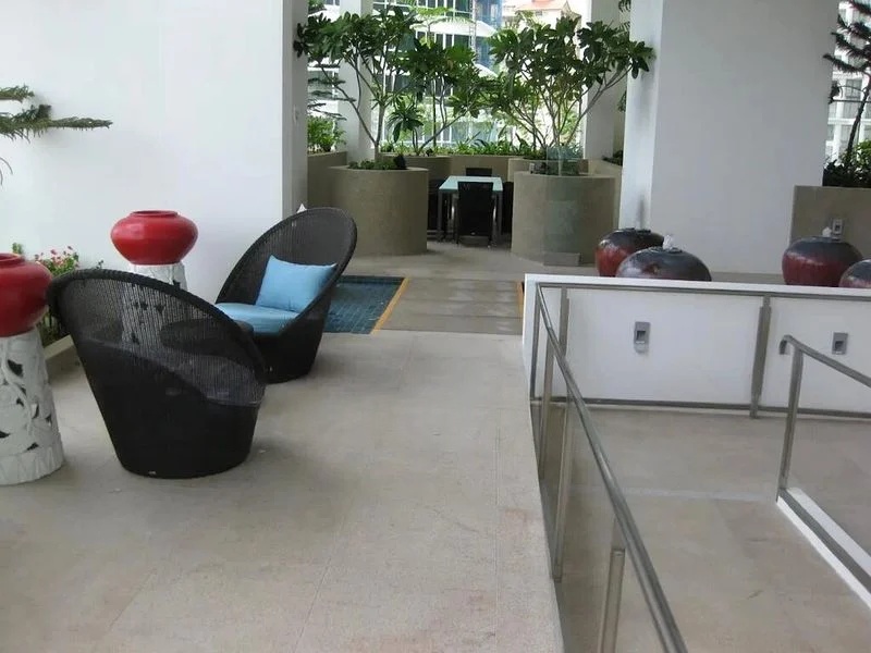 Step into a world of tranquility as you enter this well-maintained 5-bedroom unit at One Devonshire. The abundant natural light floods the open-concept living area, highlighting the elegant marble-look floor tiles and offering panoramic views of lush greenery and the inviting swimming pool. The modern minimalist ambiance is complemented by the glass balcony railing, creating a seamless connection between indoor and outdoor spaces.