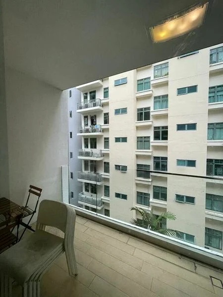 Step into a serene oasis where modern minimalism meets functionality. This well-maintained 1-bedroom unit at STELLAR RV greets you with a bright ambiance, featuring marble-look floor tiles and dark wood doors that create a sophisticated contrast. The open-plan layout allows natural light to filter through, enhancing the inviting atmosphere while offering views of the neighboring building.