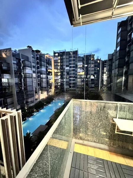 Step into a serene oasis where modern minimalism meets comfort. This well-maintained 1-bedroom unit at The Alps Residences welcomes you with a bright and airy living space, enhanced by a stunning mirror wall that reflects the gentle light filtering through. Enjoy tranquil views of the pool from your private balcony, complete with a retractable laundry rack and a stylish folding table, perfect for morning coffees or evening relaxation.