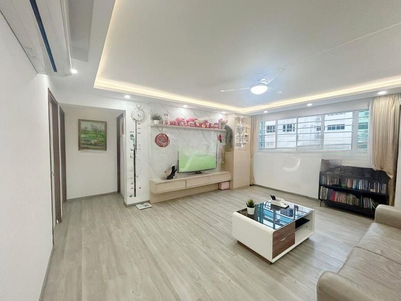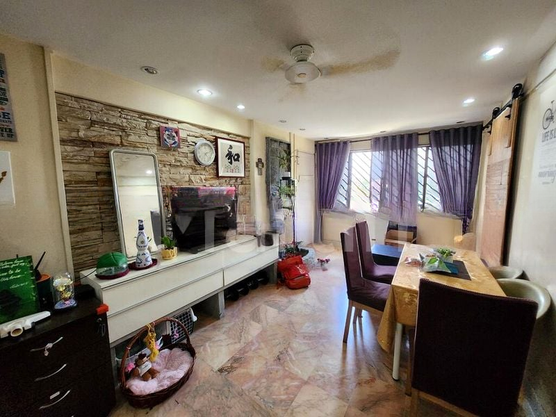 Step into this inviting 2-bedroom flat at 67 Marine Drive, where a stone feature wall greets you, complemented by marble-look floor tiles that enhance the cozy ambiance. Natural light filters through the windows, offering serene views of the surrounding greenery and HDB estate, creating a warm and lived-in feel.