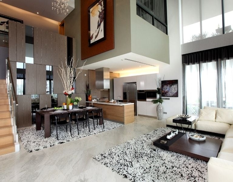 Step into a world of elegance and sophistication as you enter this stunning designer unit at SKYPARK. The bright and airy ambiance is accentuated by abundant natural light flooding through the floor-to-ceiling windows, showcasing breathtaking views of the city skyline and lush greenery. The double-volume high ceiling and marble flooring create an inviting atmosphere, perfect for both relaxation and entertaining.