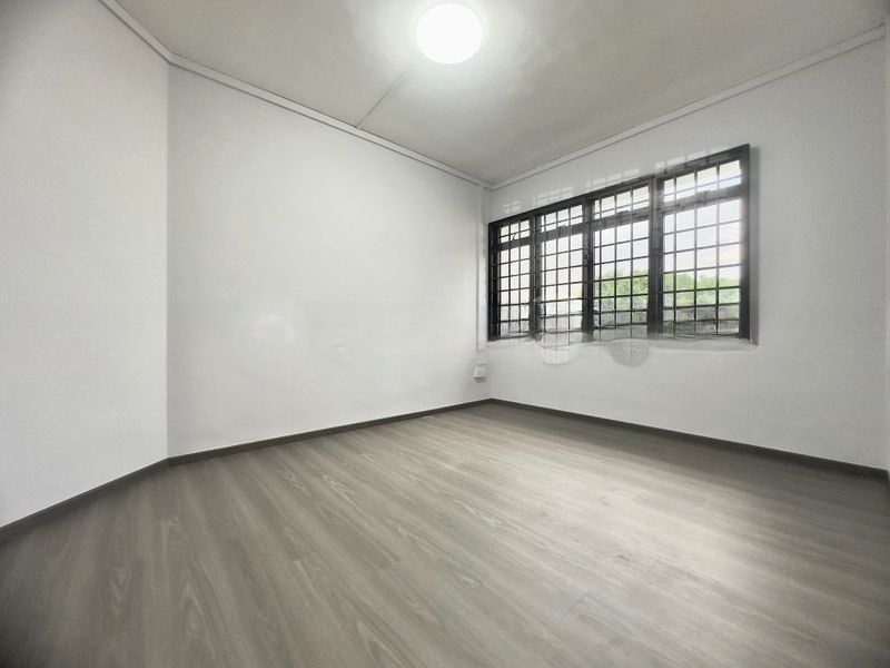 Step into a world of modern minimalist elegance at this beautifully renovated HDB flat. Abundant natural light floods the open-concept living and dining areas, highlighting the warm cove lighting and light wood flooring. Large windows frame stunning views of greenery and the city skyline, creating a serene yet vibrant ambiance that invites relaxation and inspiration.