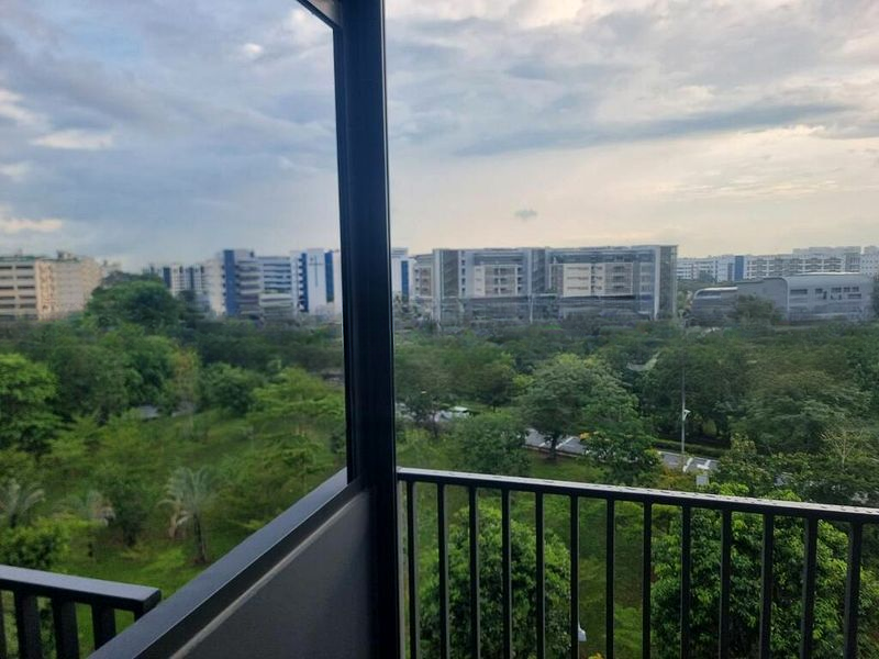 Step into a world of modern elegance with this brand-new 1-bedroom unit at Treasure at Tampines. The moment you enter, you are greeted by an abundance of natural light that floods the open-concept living and dining area, accentuated by light-colored tile flooring and direct access to a private balcony. Enjoy serene views of the lush greenery and the inviting swimming pool, creating a tranquil ambiance perfect for relaxation.