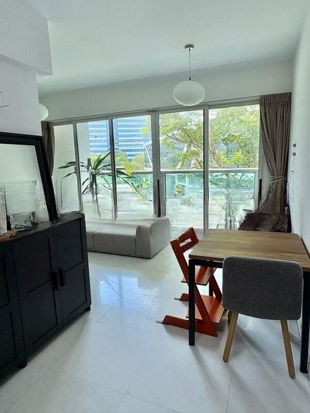Step into a world of light and space in this well-maintained 1-bedroom unit at Suites at Orchard. The open-concept living area, adorned with marble-look floor tiles, welcomes you with abundant natural light streaming through sliding glass doors that lead to a spacious balcony. Enjoy urban views from your large balcony, complete with wood-look decking and a ceiling fan, perfect for relaxation or entertaining.