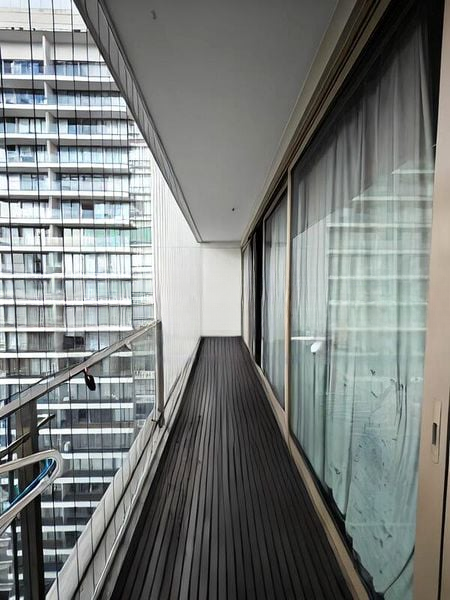 This well-maintained 1-bedroom unit features a stylish island kitchen with integrated cabinetry and a minimalist backsplash, perfect for culinary enthusiasts. The spacious living room, adorned with an L-shaped sofa, seamlessly connects to a wooden-decked balcony, ideal for enjoying your morning coffee while soaking in the panoramic vistas. The common areas boast an infinity pool overlooking the city, a landscaped garden deck, and a modern lobby with marble accents, elevating your living experience.