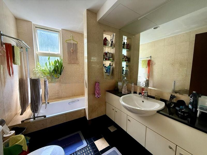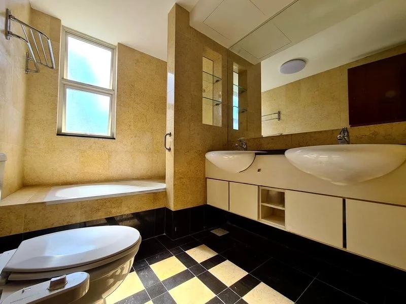 This well-maintained 3-bedroom unit boasts a thoughtful layout, with each room designed for both functionality and style. The kitchen is equipped with a sleek black solid surface countertop, perfect for culinary enthusiasts, while the bedrooms feature cozy wood parquet flooring and built-in wardrobes for ample storage. A dedicated study area with a built-in desk and overhead storage enhances the practicality of this home, making it ideal for work-from-home arrangements.