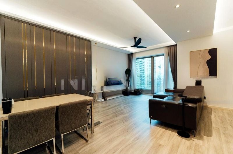 This well-maintained 2-bedroom, 2-bathroom unit boasts a spacious layout, perfect for both relaxation and entertaining. The living room features an L-shaped leather sofa, while the integrated dining area is highlighted by a large feature cabinet. The bedrooms are designed for comfort, with large windows framing stunning city views, and the bathrooms showcase modern fixtures and a glass shower partition, ensuring a luxurious experience.