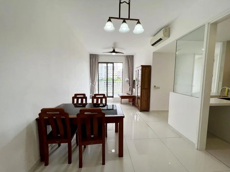 This well-maintained unit features three spacious bedrooms, including a master suite with floor-to-ceiling built-in wardrobes and large windows that invite the outdoors in. The common bedroom is perfect for a study or guest room, complemented by a delightful view of greenery. Enjoy the convenience of a glass shower enclosure in the bathroom and a stylish dining area with a glass-top table, ideal for entertaining.