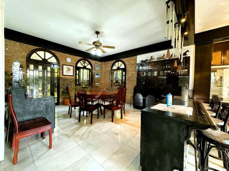 Step into a world of rustic elegance as you enter this beautifully maintained 6-bedroom condominium at La Suisse. The abundant natural light floods the space, highlighting the exquisite marble flooring and the charming exposed brick walls. Arched windows and doors create an inviting ambiance, while views of the lush greenery and private swimming pool provide a serene backdrop for relaxation.