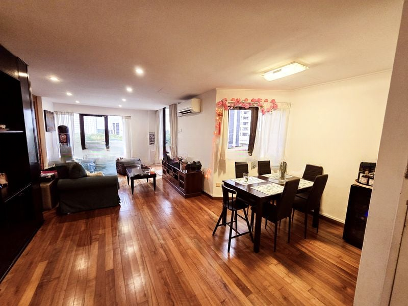 Step into this beautifully maintained unit at Bayshore Park and be greeted by an abundance of natural light that fills the cozy living space. The polished wood flooring and recessed ceiling lights create a warm ambiance, while the balcony offers breathtaking views of lush greenery, the city skyline, and even the distant sea.