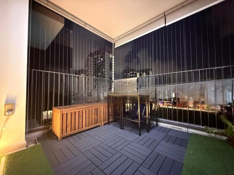 This well-maintained 1-bedroom plus study unit features a thoughtfully designed layout, perfect for both living and working. The kitchen boasts dark cabinetry and integrated appliances, while the bathroom showcases a stylish vessel sink and glass shower partition. Unique touches like a custom cat climbing wall and built-in desk area elevate this home, making it a perfect sanctuary for pet lovers and professionals alike.