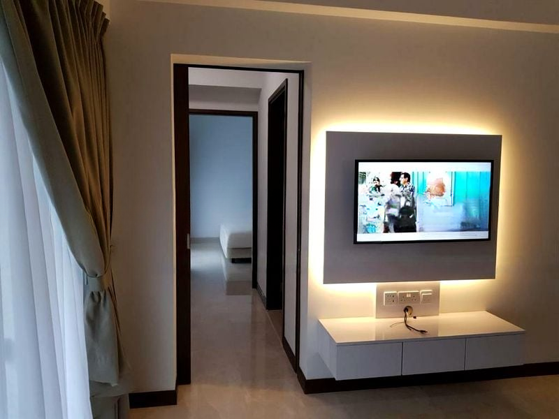 Step into a world of modern elegance as you enter this beautifully renovated 1-bedroom unit at ECO. The abundant natural light floods the space, highlighting the sleek marble-look flooring and the stunning backlit TV feature wall. With sliding glass doors leading to a private terrace, you can enjoy serene views of the pool and lush greenery, creating a tranquil ambiance that invites relaxation.