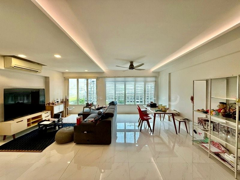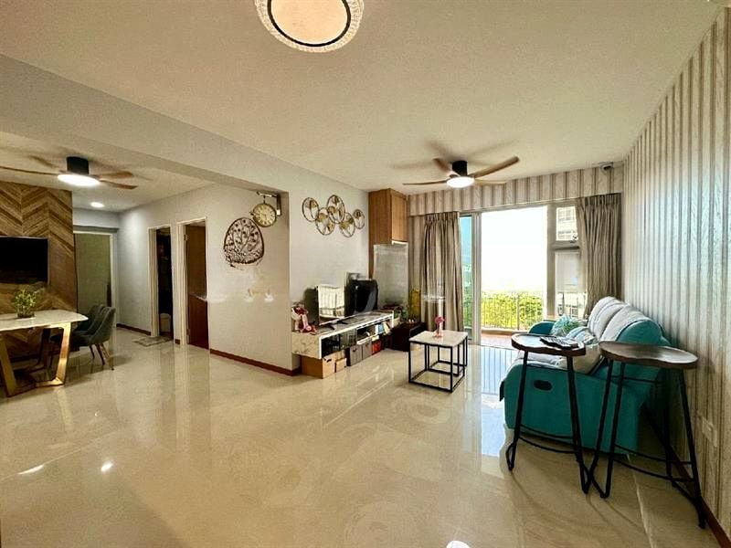 Step into this beautifully renovated 4-bedroom HDB flat at Sumang Walk, where abundant natural light floods the space, creating a bright and airy ambiance. The polished floor tiles and the striking herringbone wood-patterned feature wall in the dining area instantly draw your attention, while the glass partition kitchen adds a modern touch, allowing for seamless interaction between spaces. Enjoy picturesque views of greenery and residential buildings from your living room balcony.