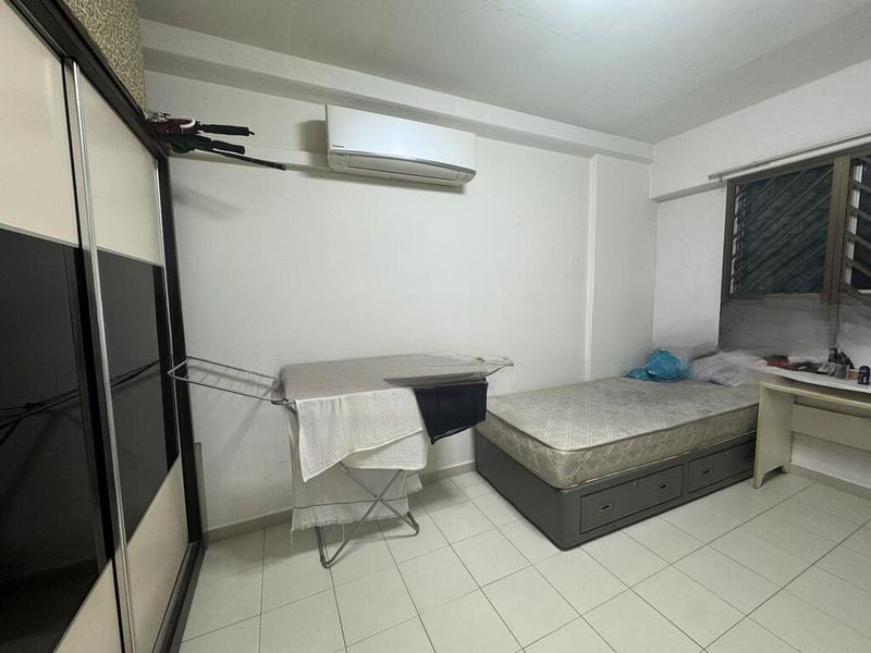 Step into this functional 2-bedroom flat at 353 Yishun Ring Road, where the tiled flooring and decorative crown molding create a classic ambiance. Although natural light is limited, the space feels welcoming with a fully-furnished living room featuring a comfortable sofa set and TV console, perfect for relaxation after a long day.