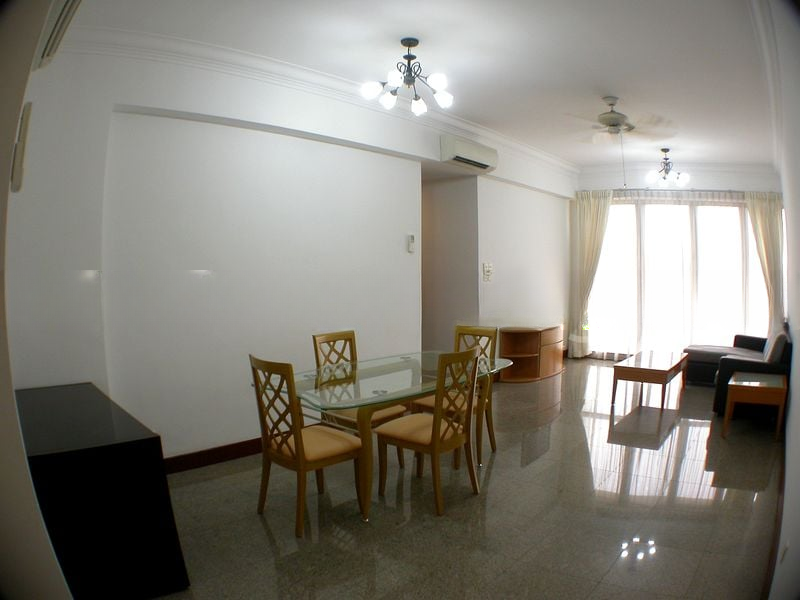 Step into a bright and airy sanctuary at Eastpoint Green, where abundant natural light floods through the floor-to-ceiling windows, offering stunning views of the city skyline and lush greenery. The polished stone flooring and tasteful furnishings create an inviting ambiance that makes you feel right at home.
