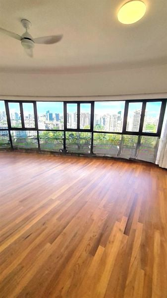 Step into this bright and airy unit at The Draycott, where abundant natural light floods through the stunning curved panoramic windows, framing captivating views of the city skyline and lush greenery. The inviting ambiance is enhanced by the elegant wood parquet flooring and recessed lighting, creating a warm and welcoming atmosphere.