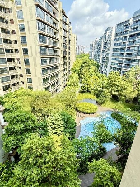 Step into a bright and airy oasis at D'NEST, where abundant natural light floods the space through full-height windows. The inviting ambiance is complemented by stunning views of the landscaped swimming pool and lush greenery, creating a serene retreat amidst urban living. The balcony beckons you to unwind while soaking in the tranquil surroundings.